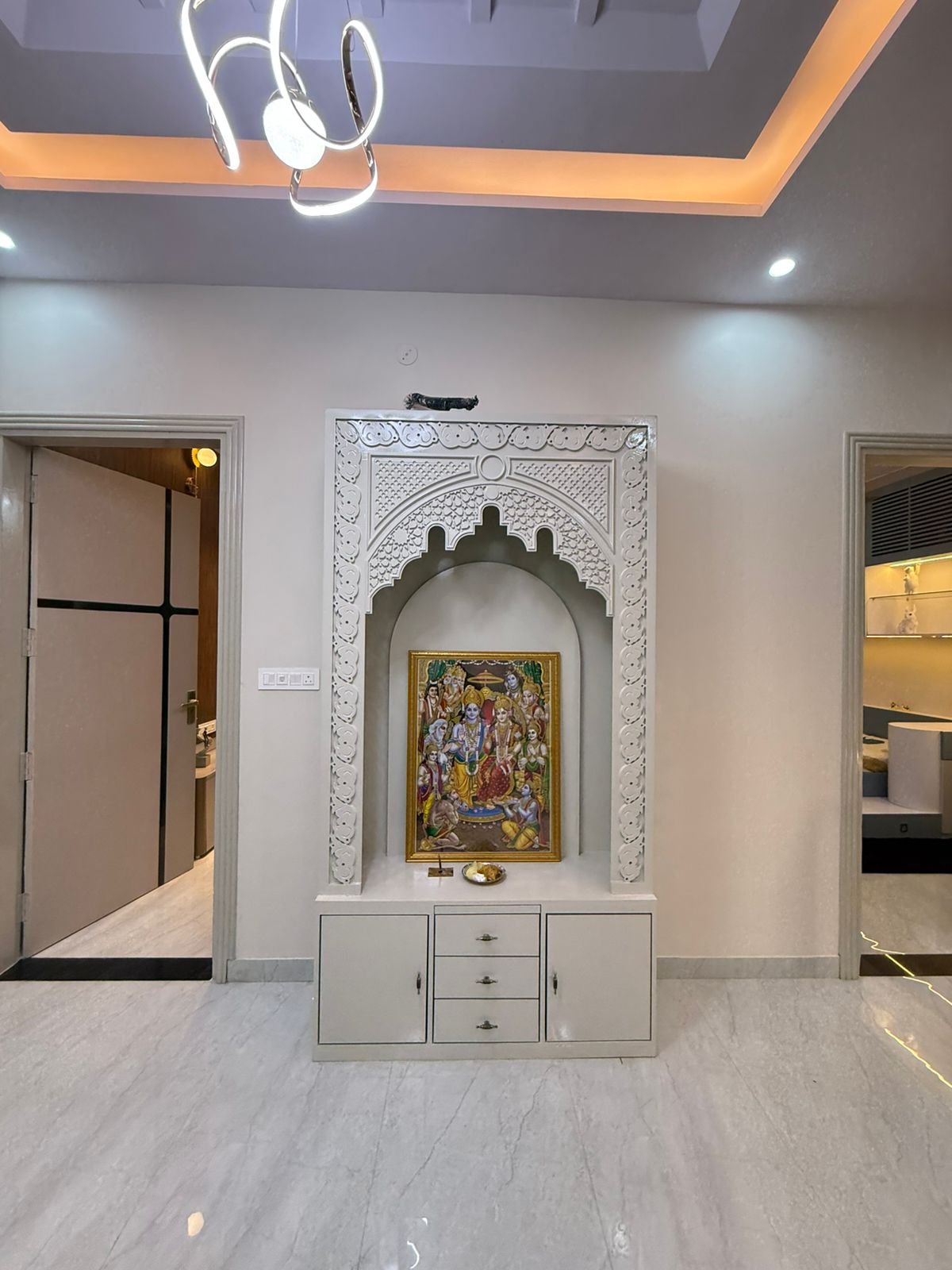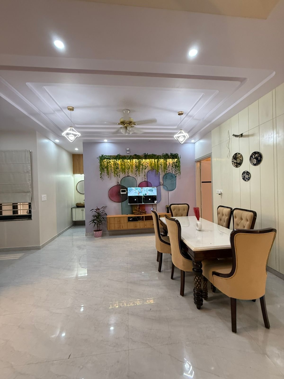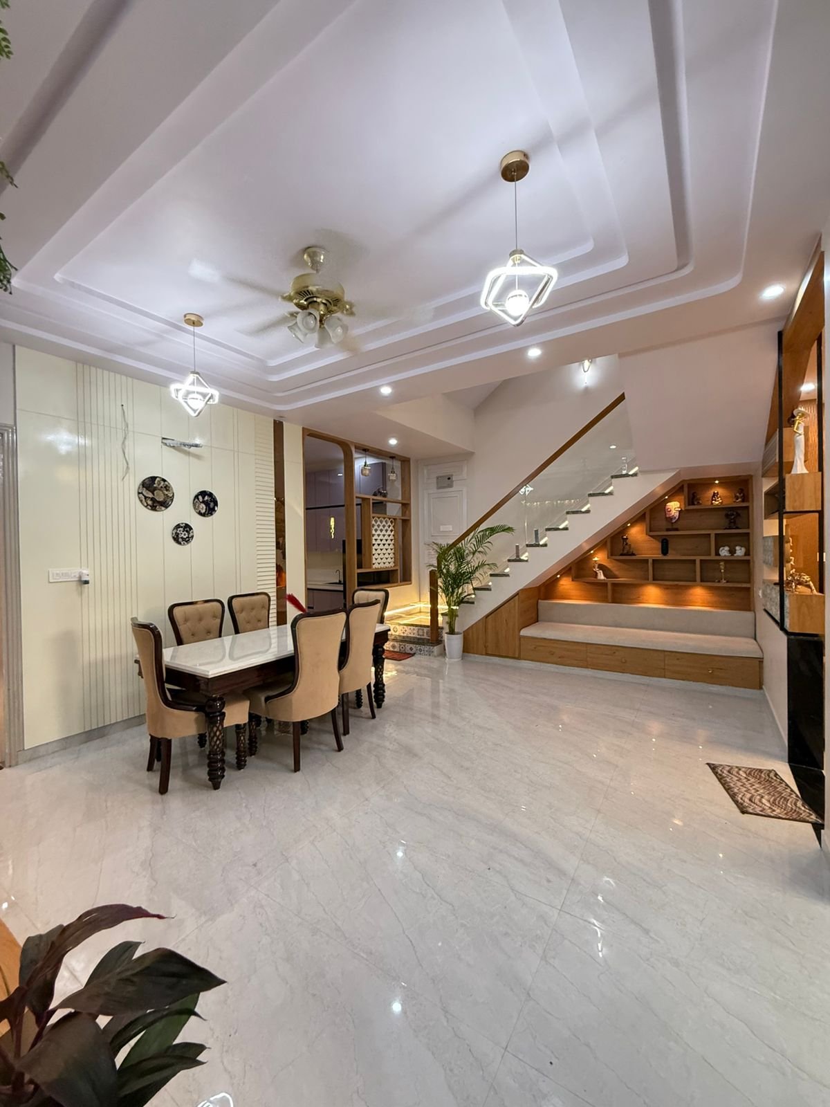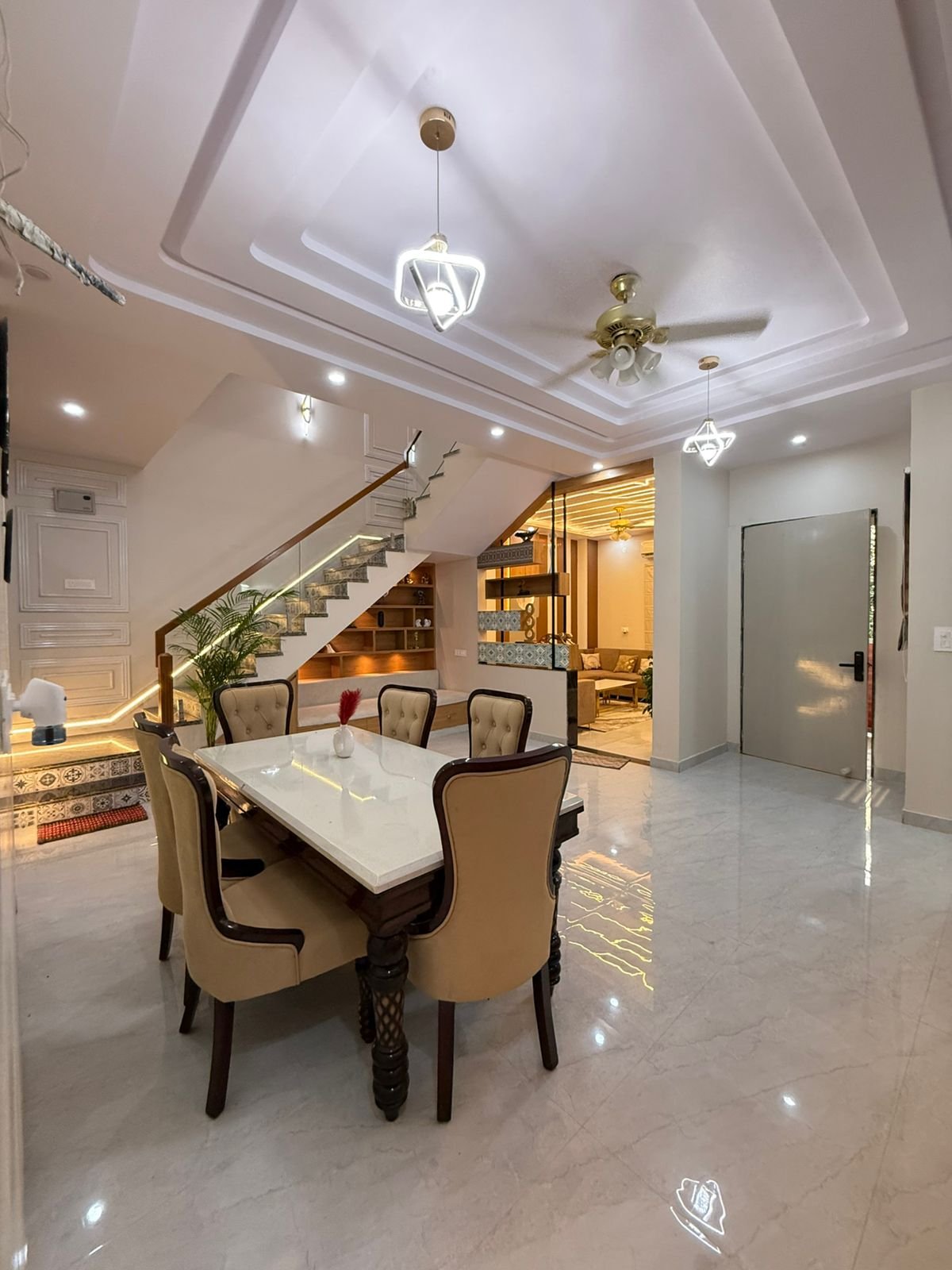 The interior of this 5 BHK Kothi in Dhawas Jaipur for Sale follows a contemporary aesthetic. The false ceiling work, premium flooring, and high-end wall finishes are already in place.